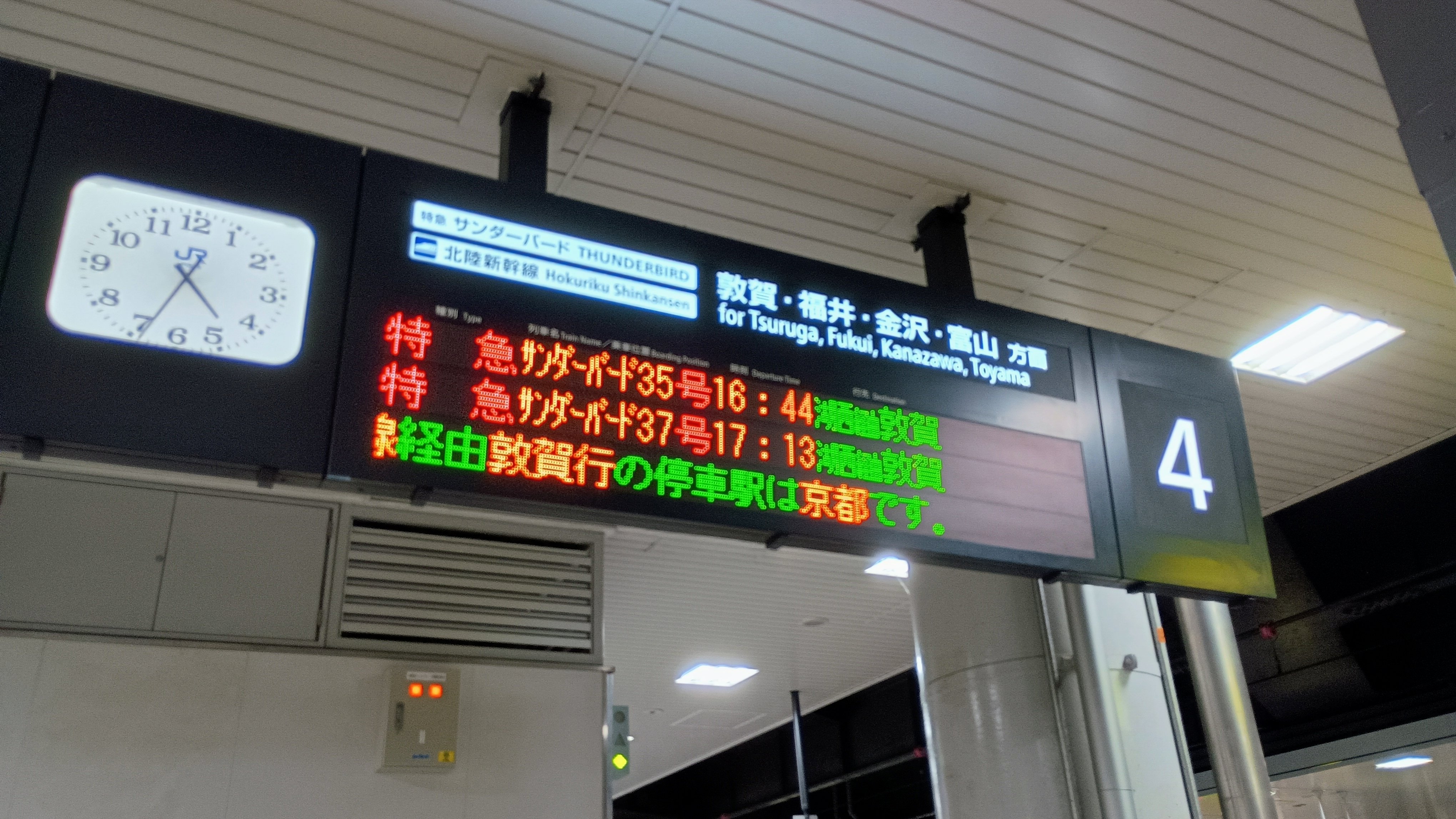ただ、京都駅の構造上、サンダーバードが止まる北陸線は嵯峨野線ホームまで200mくらい歩きます。特急はるかの関西空港線だと嵯峨野線の真横なので、新大阪~京都間の特急ははるかにすべきでした。来年からそうしよう。