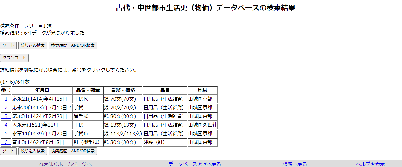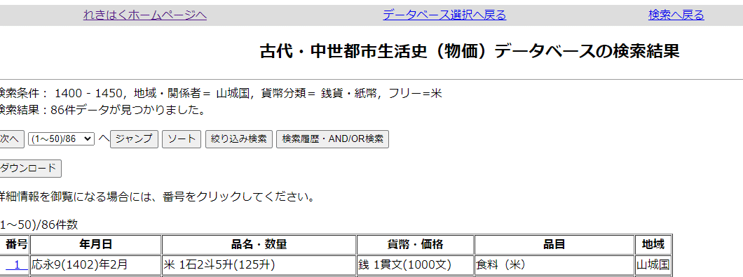 「古代・中世都市生活史(物価)データベース」