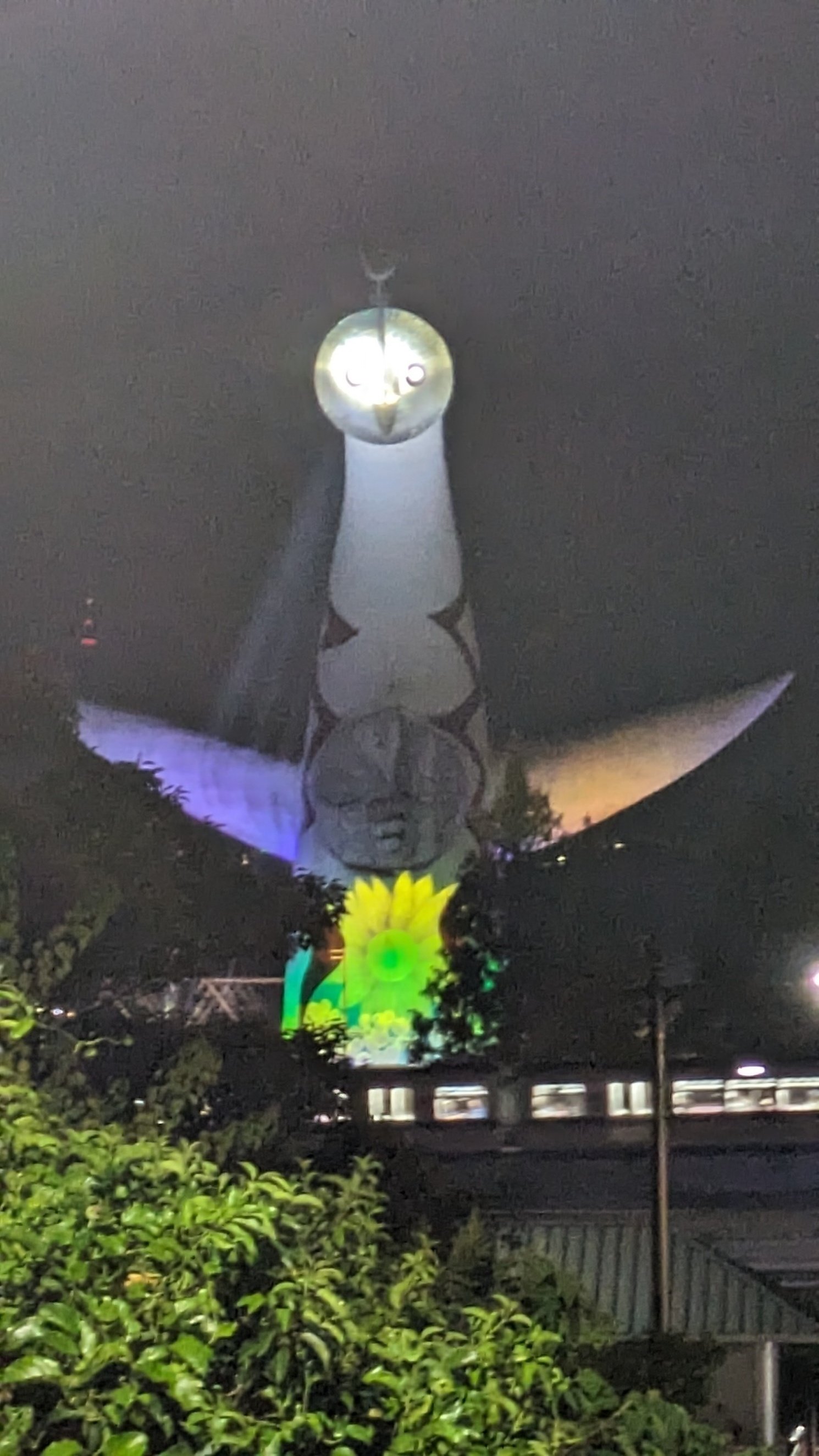 最後に、怪しげなライトアップをされていた太陽の塔の写真も添えておきます。