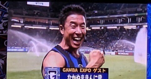 最後に、試合前のイベントと直前のキックイン、そしてハーフタイムに出てくれた、なかやまきんに君について。